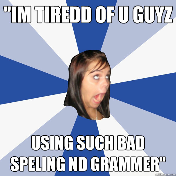 "Im tiredd of u guyz Using such bad speling nd grammer"