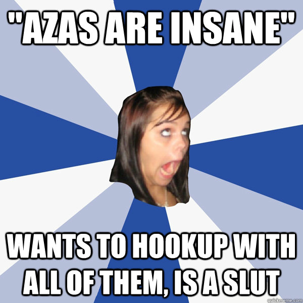 "AZAs are insane" Wants to hookup with all of them, is a slut