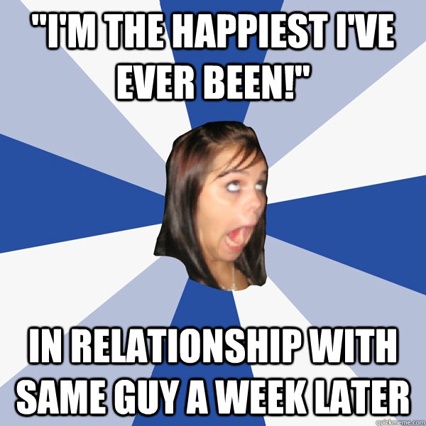 "I'm the happiest I've ever been!" in relationship with same guy a week later