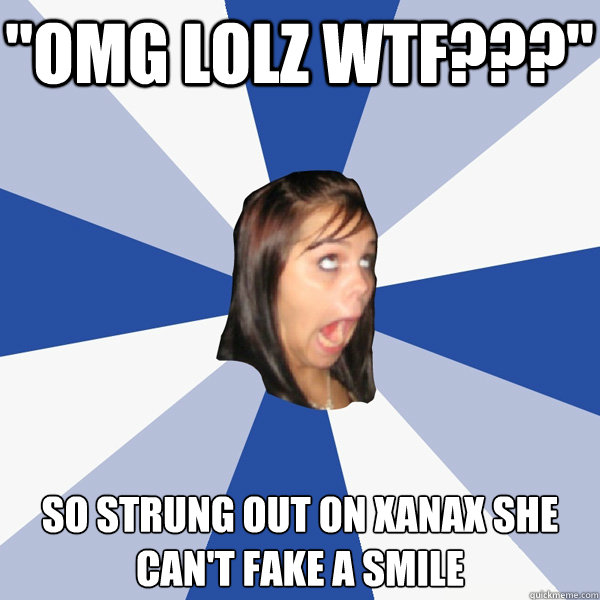 "OMG LolZ WTF???" So strung out on Xanax she can't fake a smile