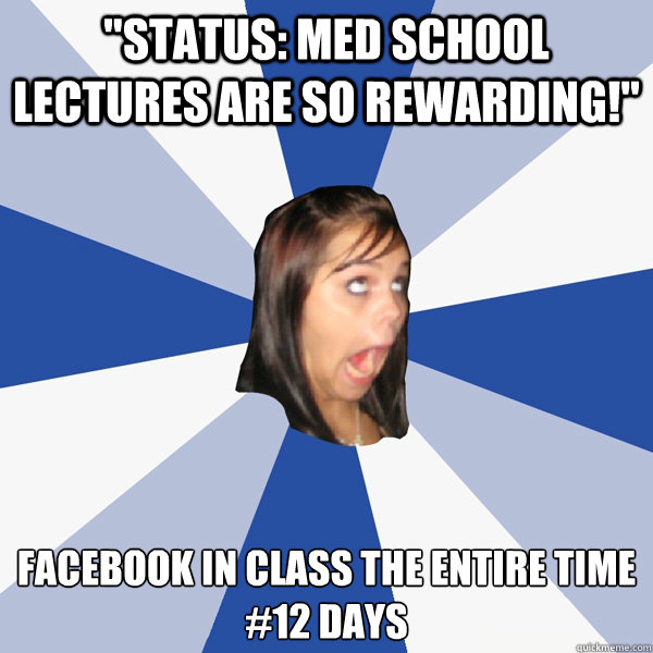 "status: med school lectures are so rewarding!" facebook in class the entire time #12 days