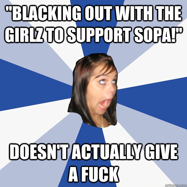 "Blacking out with the girlz to support SOPA!" Doesn't actually give a fuck