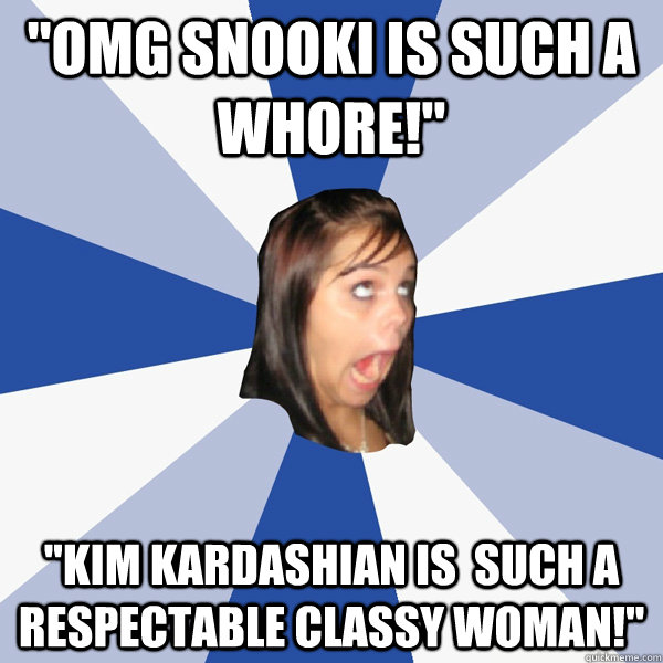 "OMG Snooki is such a whore!" "Kim Kardashian is such a respectable classy woman!"
