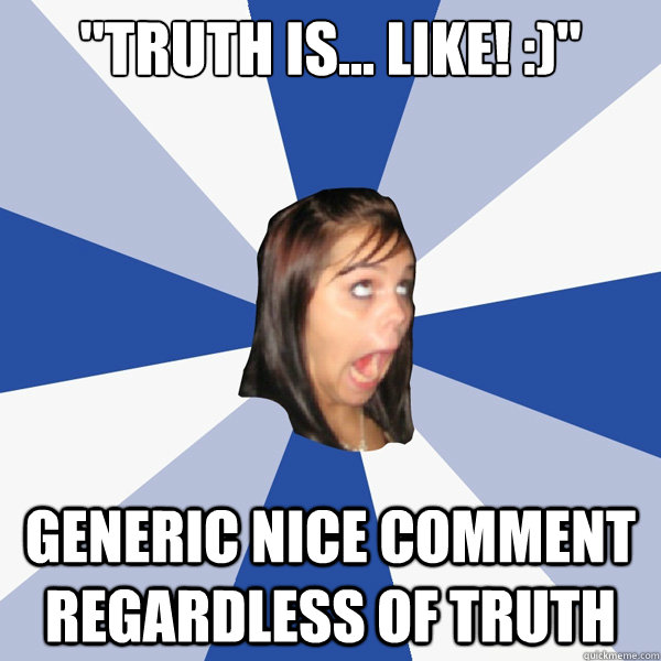 "truth is... like! :)" generic nice comment regardless of truth