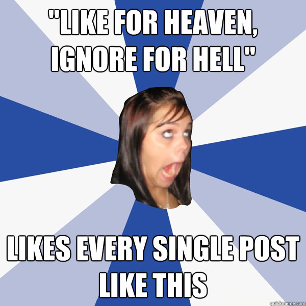 "Like for heaven, Ignore for hell" Likes every single post like this