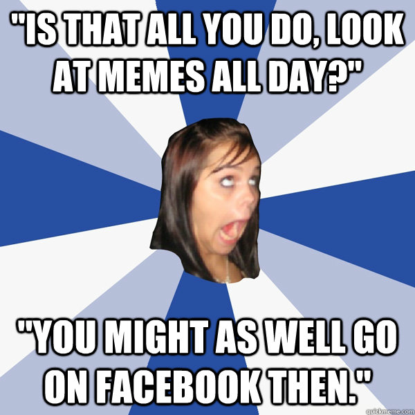 "is that all you do, look at memes all day?" "You might as well go on facebook then."