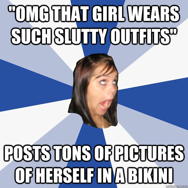 "omg that girl wears such slutty outfits" posts tons of pictures of herself in a bikini