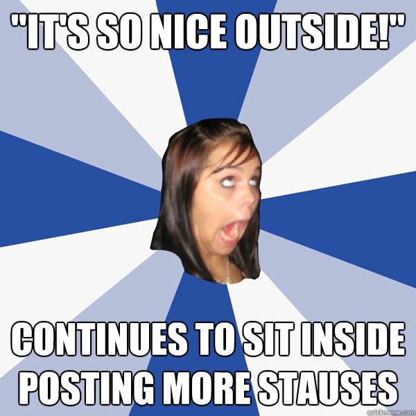 "it's so nice outside!" Continues to sit inside posting more stauses