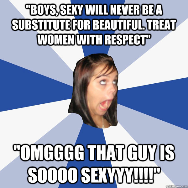 "boys, sexy will never be a substitute for beautiful. treat women with respect" "OMGGGG THAT guy is SOOOO SEXYYY!!!!"