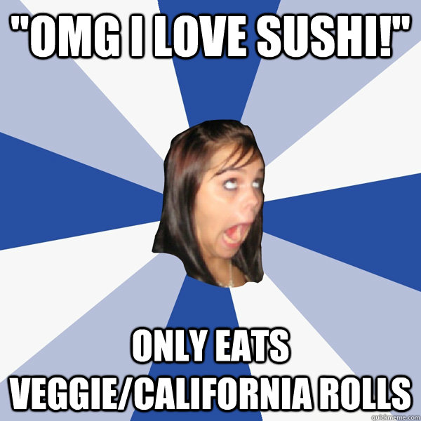 "OMG I LOVE SUSHI!" Only eats veggie/california rolls
