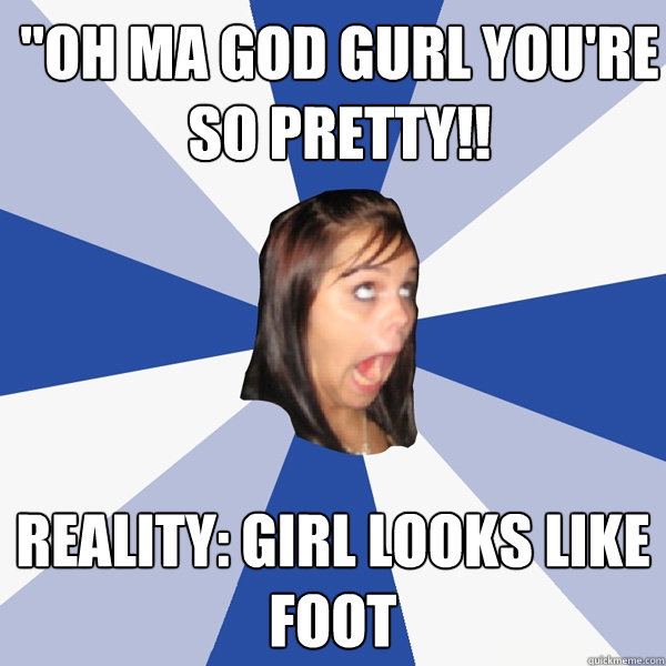 "Oh ma god gurl you're so pretty!! Reality: girl looks like foot