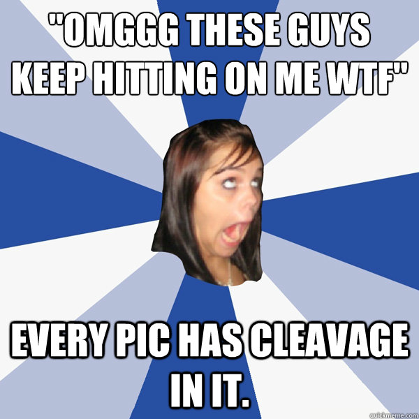 "Omggg these guys keep hitting on me wtf" Every pic has cleavage in it.