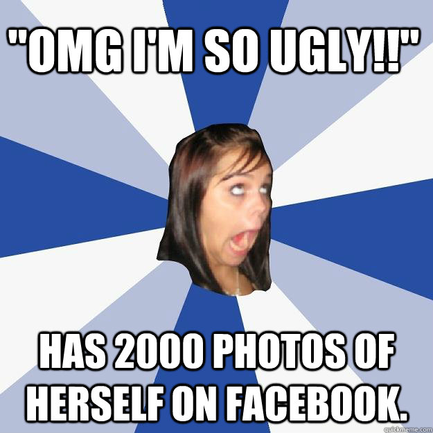 "OMG I'm so ugly!!" Has 2000 photos of herself on facebook.