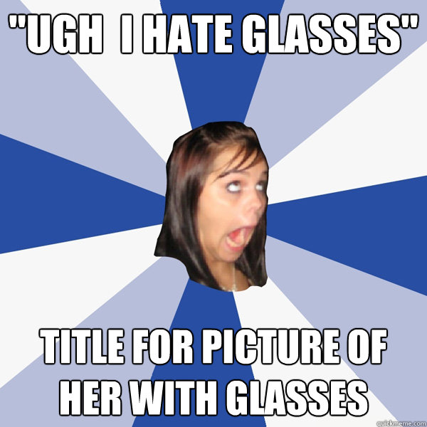 "Ugh i hate glasses" title for picture of her with glasses