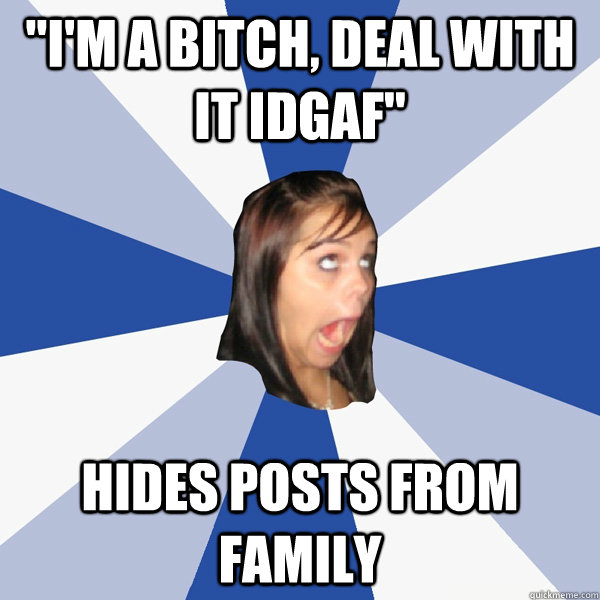 "I'm a bitch, deal with it idgaf" Hides posts from family