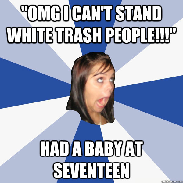 "Omg I can't stand white trash people!!!" had a baby at seventeen