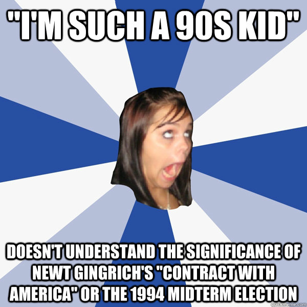 "i'm such a 90s kid" doesn't understand the significance of newt gingrich's "contract with america" or the 1994 midterm election