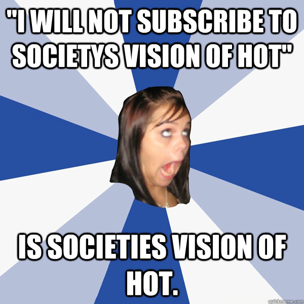 "I will not subscribe to societys vision of hot" Is societies vision of hot.