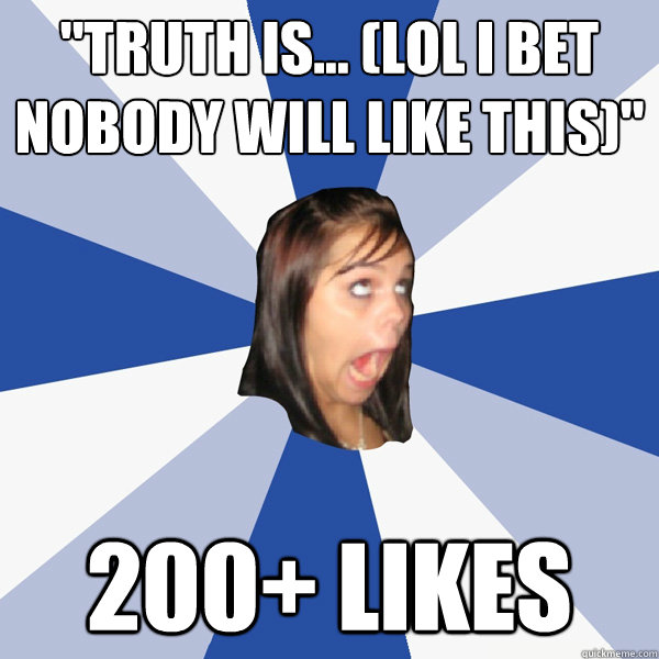 "Truth is... (lol I bet nobody will like this)" 200+ likes