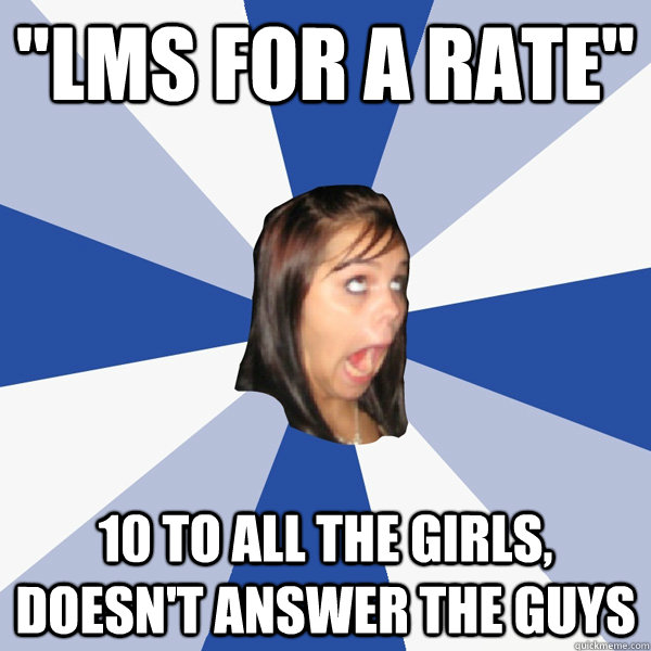 "lms for a rate" 10 to all the girls, doesn't answer the guys