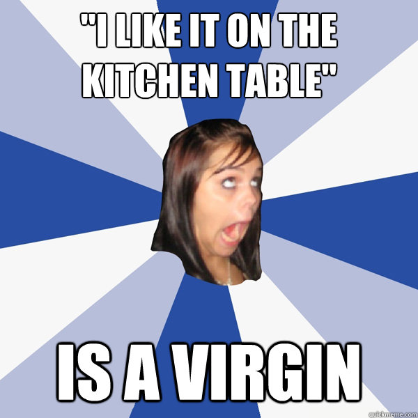 "I like it on the kitchen table" is a virgin
