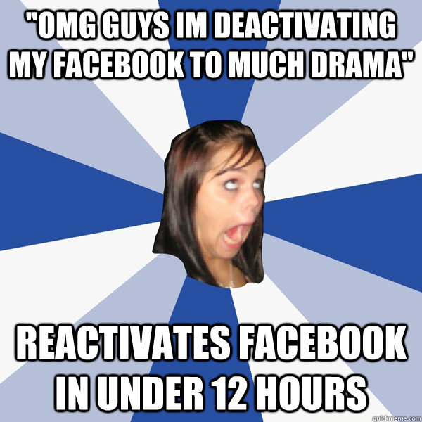 "OMG GUYS IM DEACTIVATING MY FACEBOOK TO MUCH DRAMA" REACTIVATES FACEBOOK IN UNDER 12 HOURS
