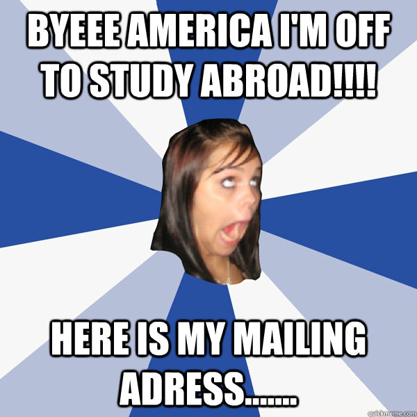 byeee america i'm off to study abroad!!!! here is my mailing adress.......