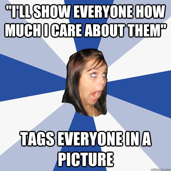 "I'll show everyone how much I care about them" Tags everyone in a picture