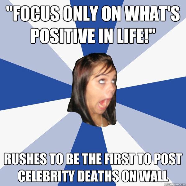 "Focus only on what's positive in life!" Rushes to be the first to post celebrity deaths on wall