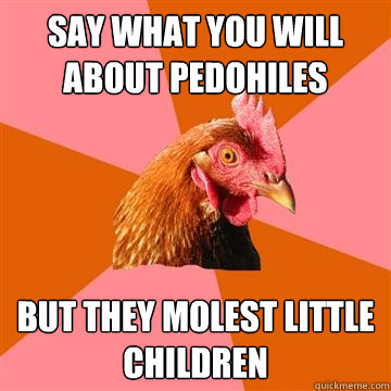 Say what you will about pedohiles But they molest little children