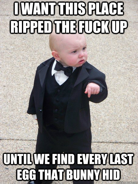 i want this place ripped the fuck up until we find every last egg that bunny hid