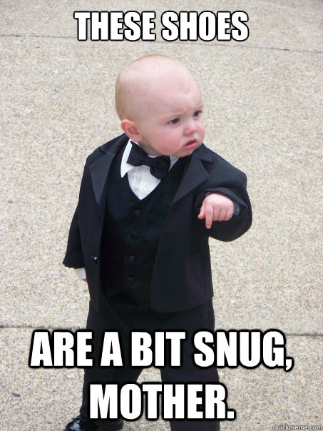 These shoes Are a bit snug, mother.