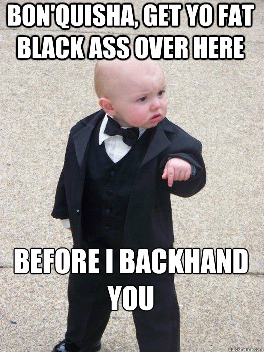 Bon'quisha, get yo fat black ass over here before i backhand you