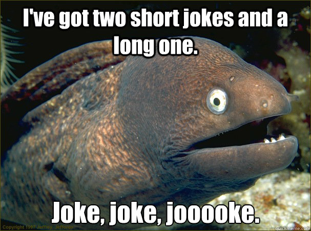 I've got two short jokes and a long one. Joke, joke, jooooke.