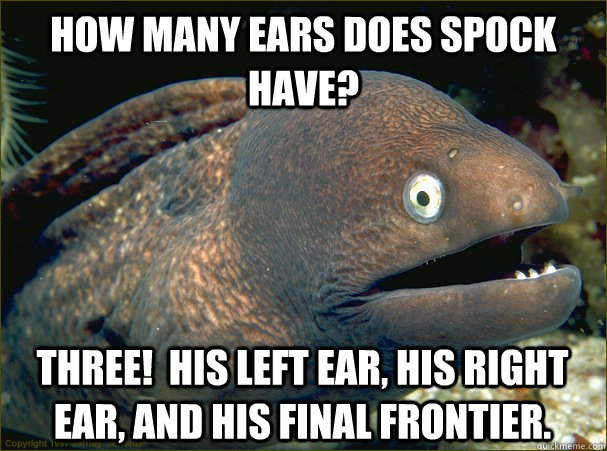 How many ears does Spock have? Three! His left ear, his right ear, and his final frontier.