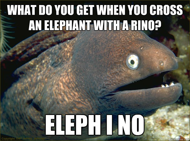 What do you get when you cross an elephant with a Rino? Eleph i no