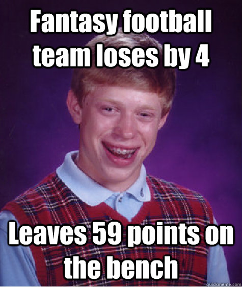Fantasy football team loses by 4 Leaves 59 points on the bench