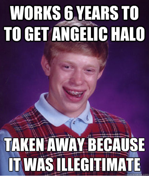 Works 6 years to to get angelic halo taken away because it was illegitimate