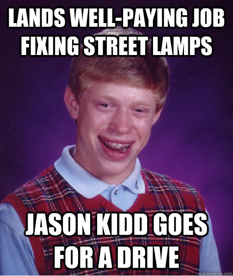Lands well-paying job fixing street lamps Jason Kidd Goes for a drive