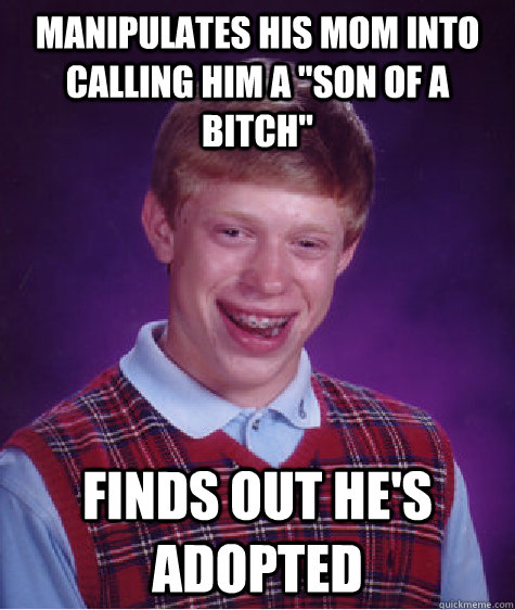 Manipulates his mom into calling him a "son of a bitch" Finds out he's adopted