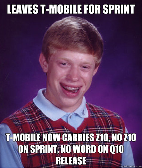 Leaves T-Mobile for Sprint T-Mobile now carries Z10, no Z10 on Sprint, no word on Q10 release