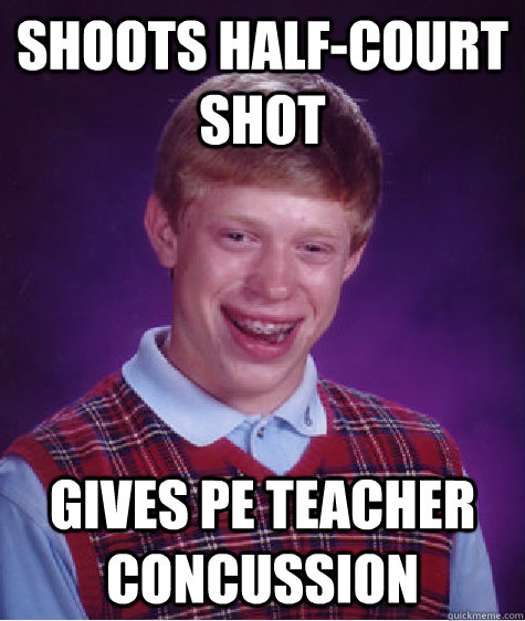 Shoots half-court shot Gives PE teacher concussion