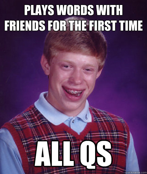 plays words with friends for the first time all qs