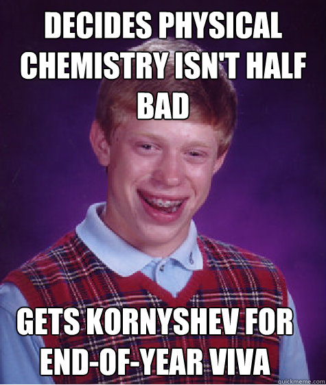 Decides physical chemistry isn't half bad Gets kornyshev for end-of-year viva