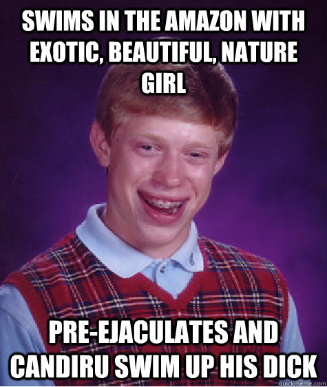Swims in the Amazon with exotic, beautiful, nature girl pre-ejaculates and Candiru swim up his dick