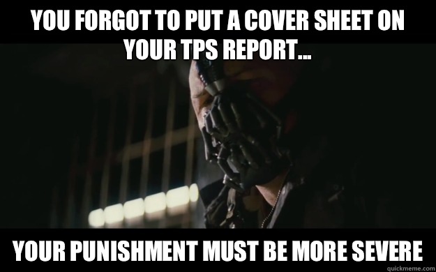 You forgot to put a cover sheet on your TPS Report... Your punishment must be more severe