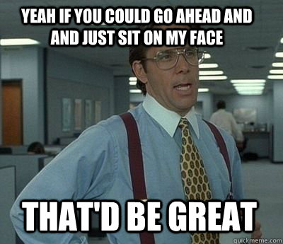 Yeah if you could go ahead and and just sit on my face That'd be great