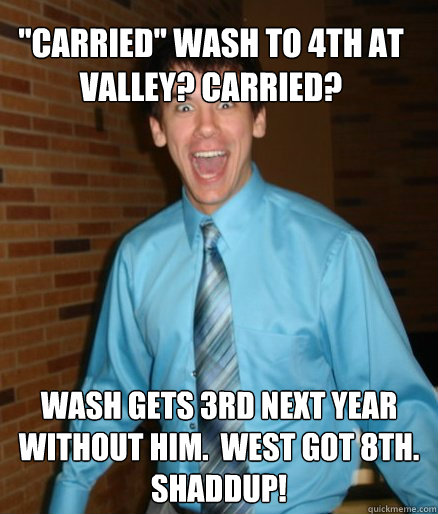 "Carried" Wash to 4th at Valley? Carried? Wash gets 3rd next year without him. West got 8th. SHADDUP!