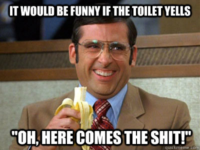 it would be funny if the toilet yells "oh, here comes the shit!"