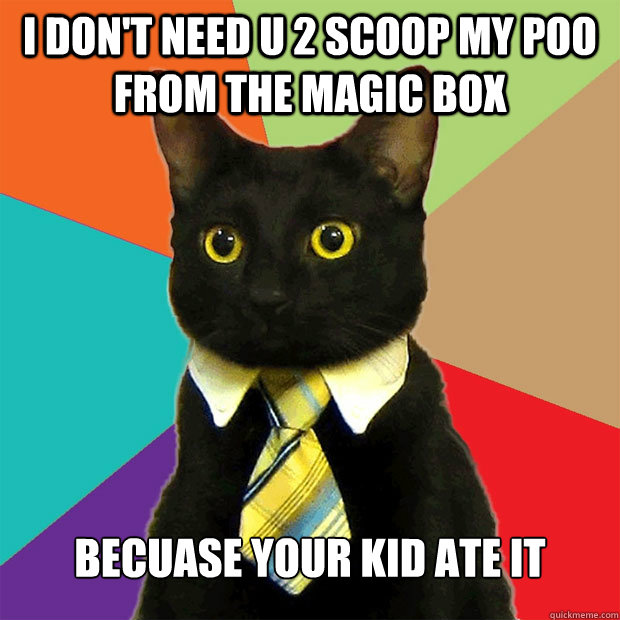 I don't need u 2 scoop my poo from the magic box Becuase your kid ate it